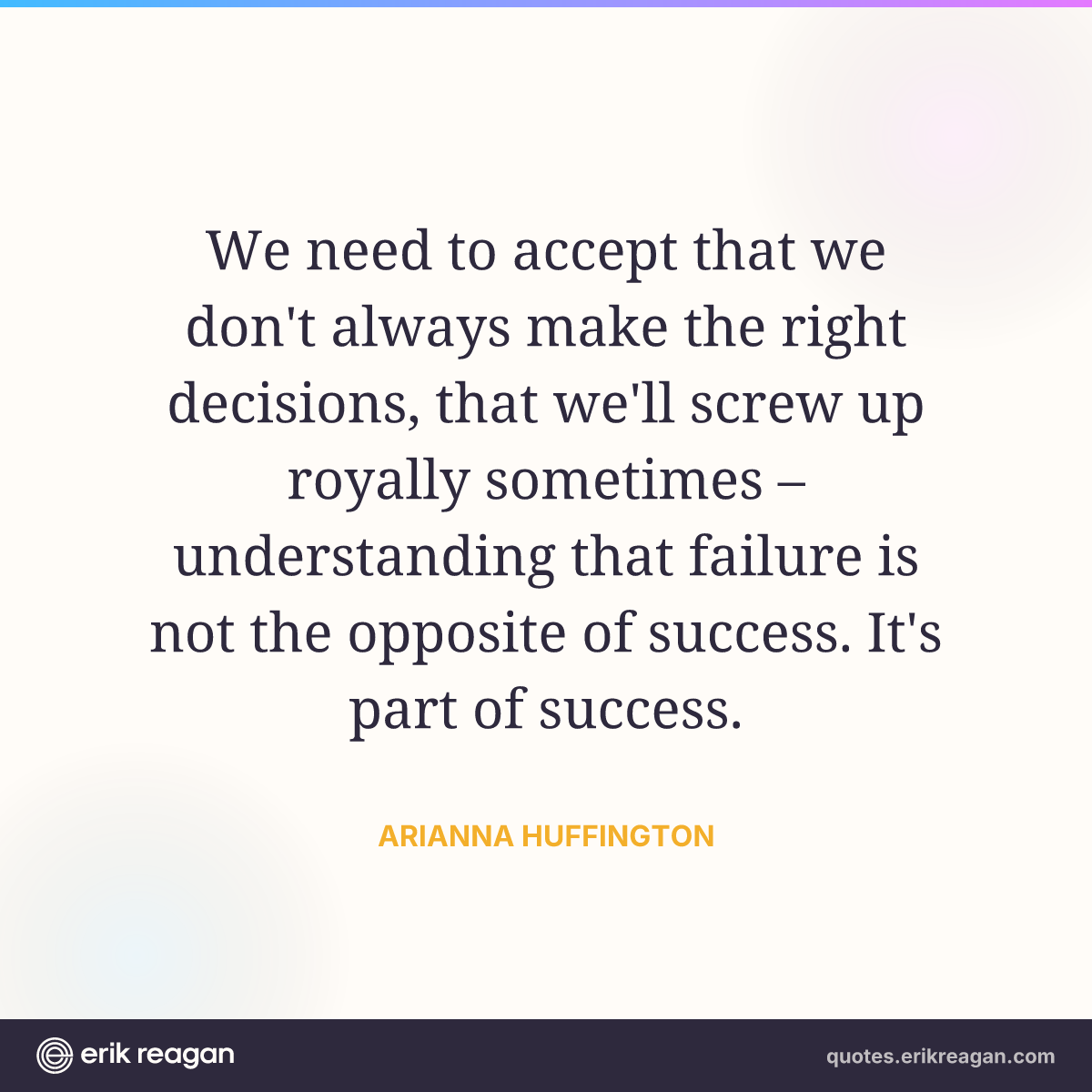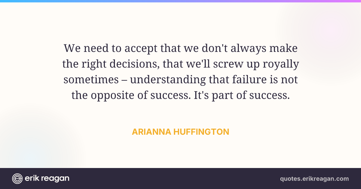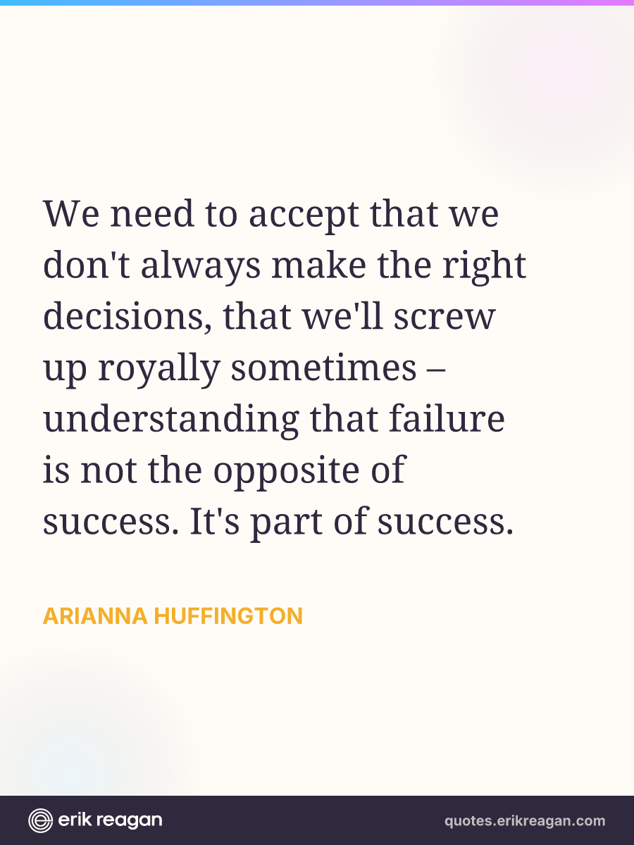 We need to accept that we don't always make the right decisions, that we'll screw up royally sometimes – understanding that failure is not the opposite of success. It's part of success.