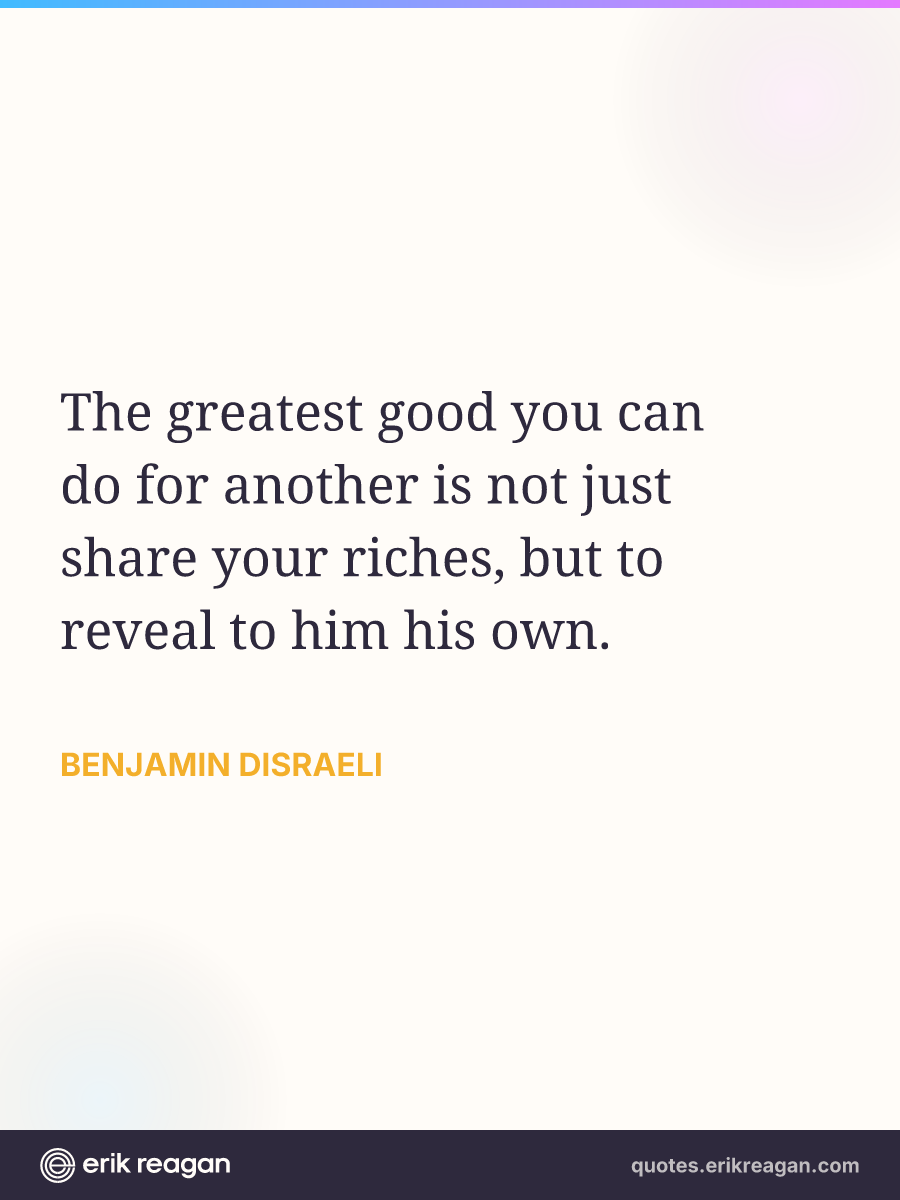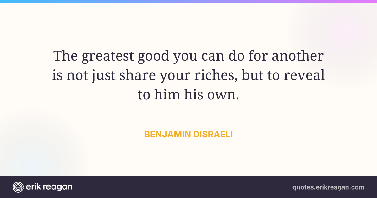 The greatest good you can do for another is not just share your riches, but to reveal to him his own.
