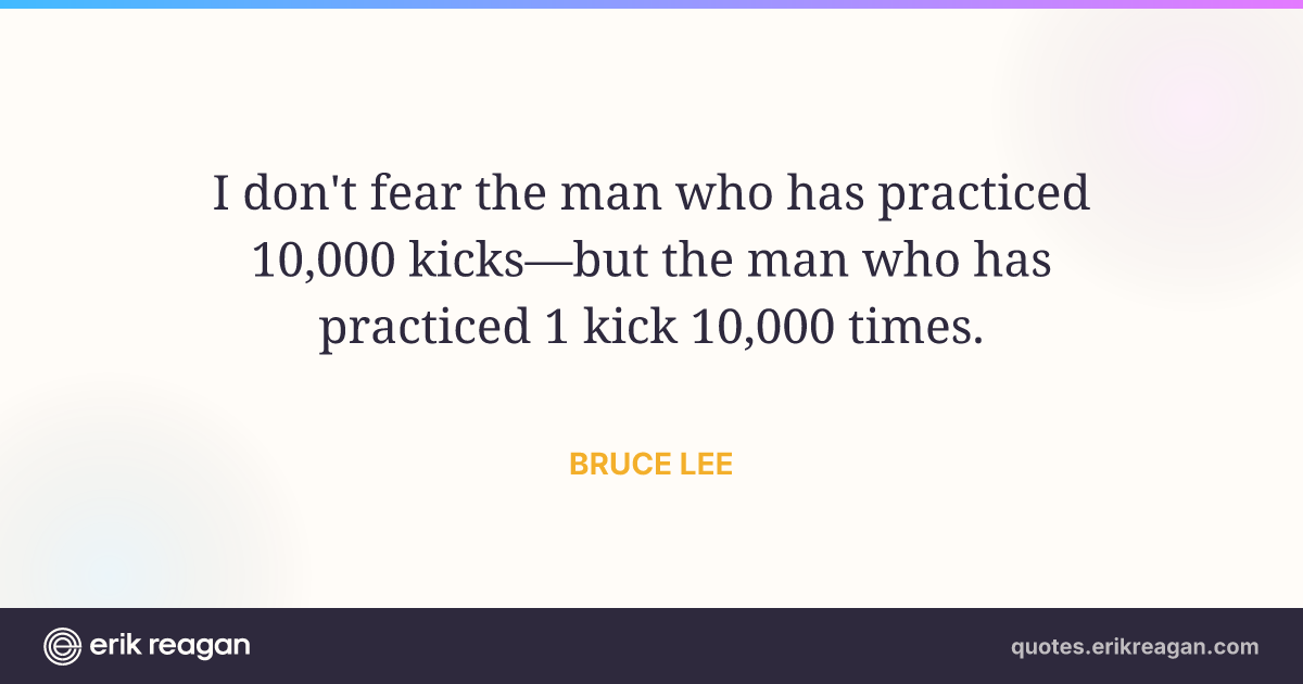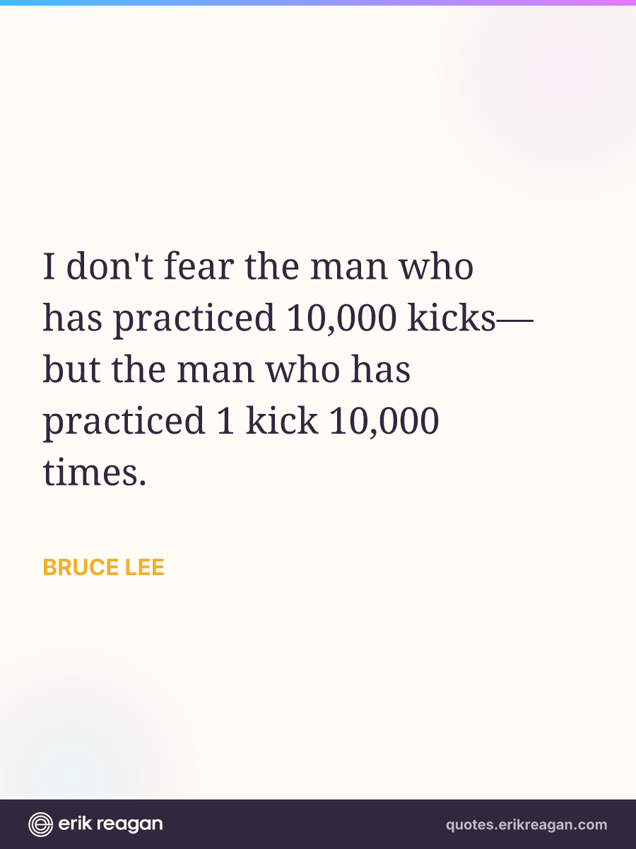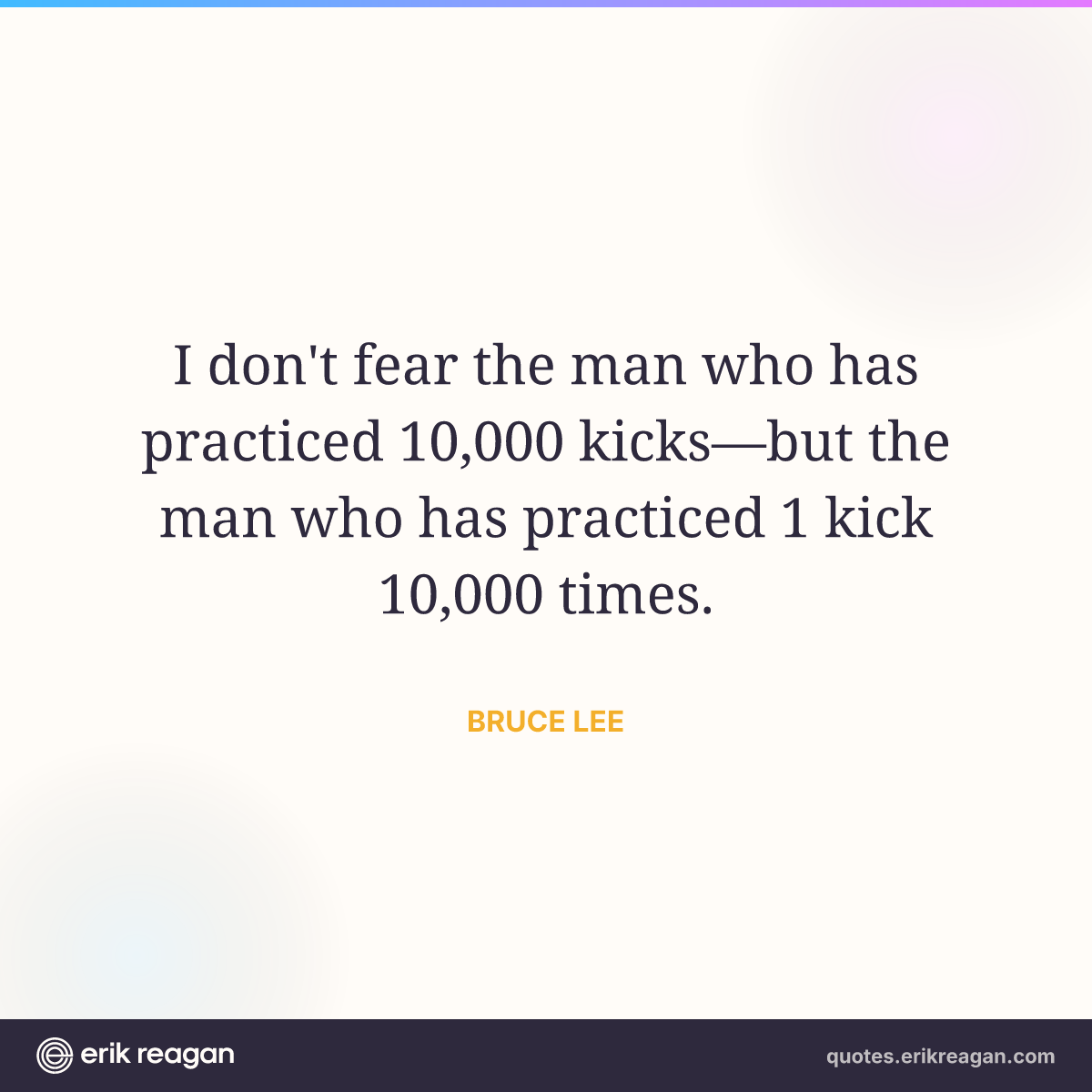 I don't fear the man who has practiced 10,000 kicks—but the man who has practiced 1 kick 10,000 times.