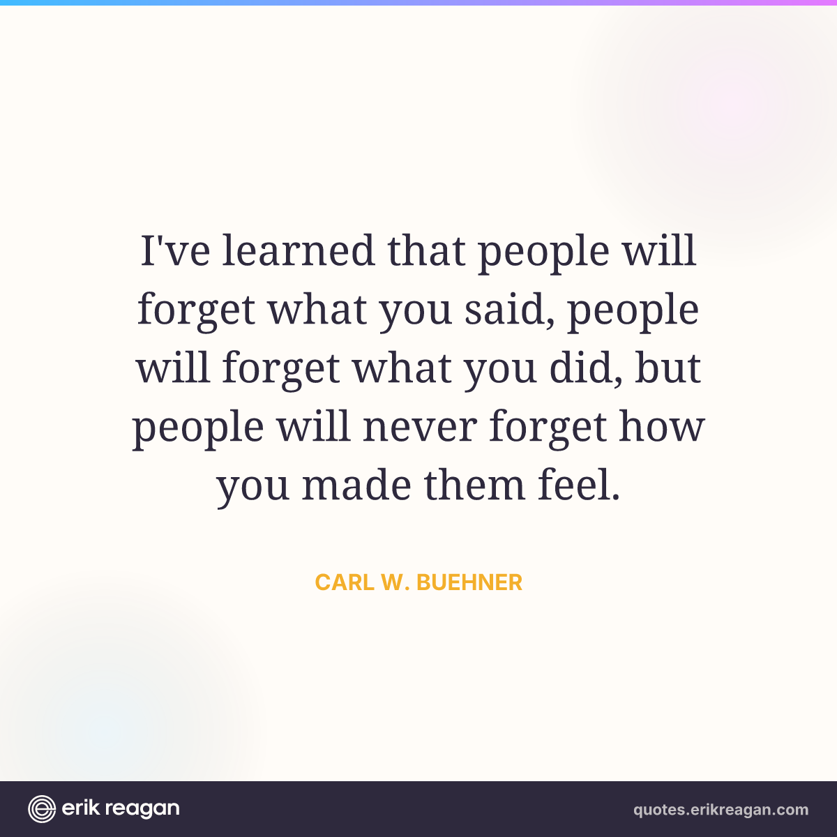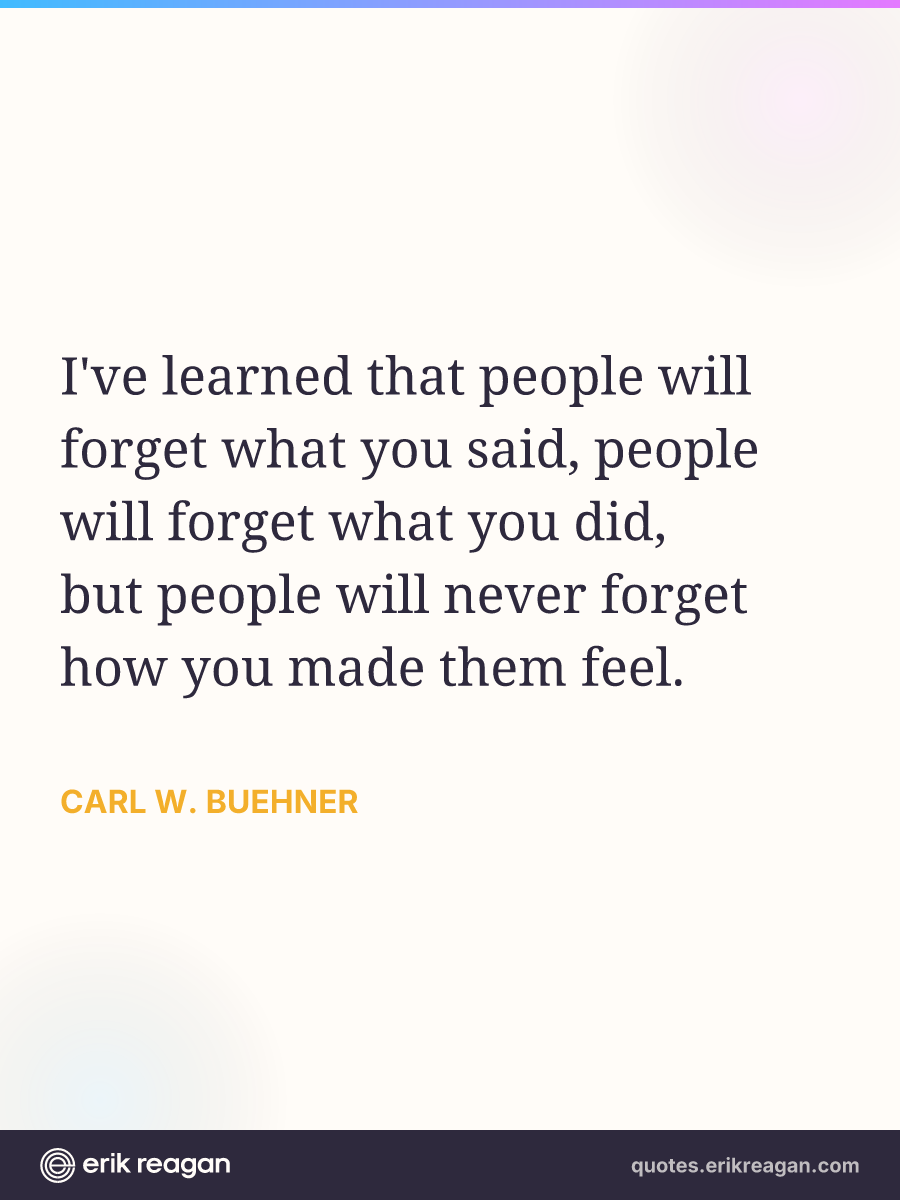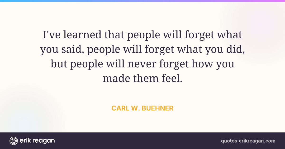 I've learned that people will forget what you said, people will forget what you did, but people will never forget how you made them feel.