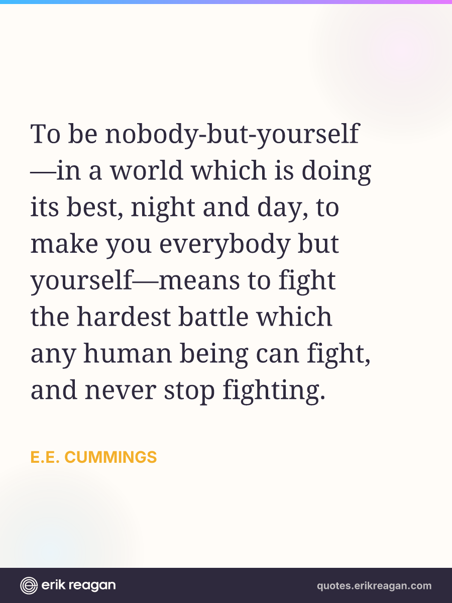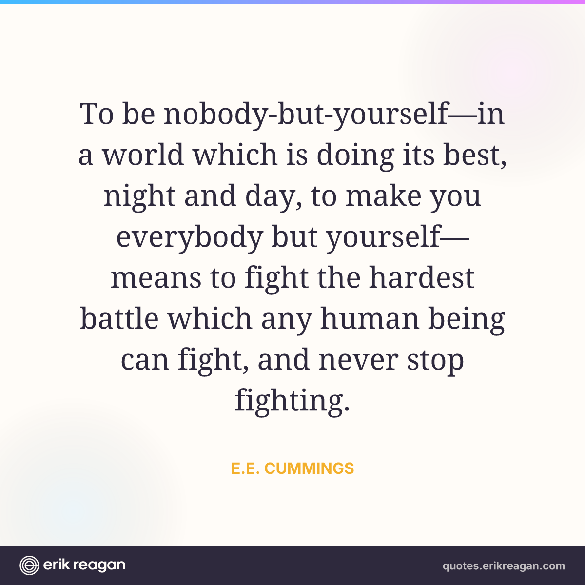 To be nobody-but-yourself—in a world which is doing its best, night and day, to make you everybody but yourself—means to fight the hardest battle which any human being can fight, and never stop fighting.