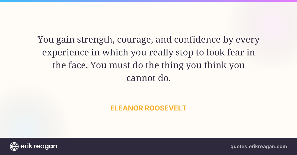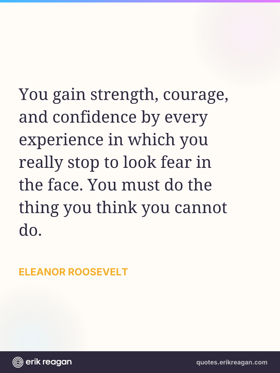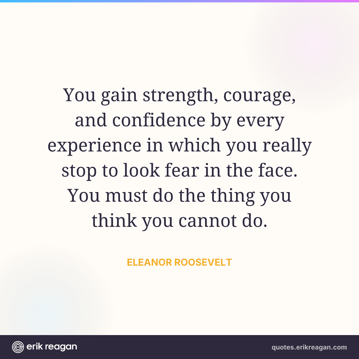 You gain strength, courage, and confidence by every experience in which you really stop to look fear in the face. You must do the thing you think you cannot do.