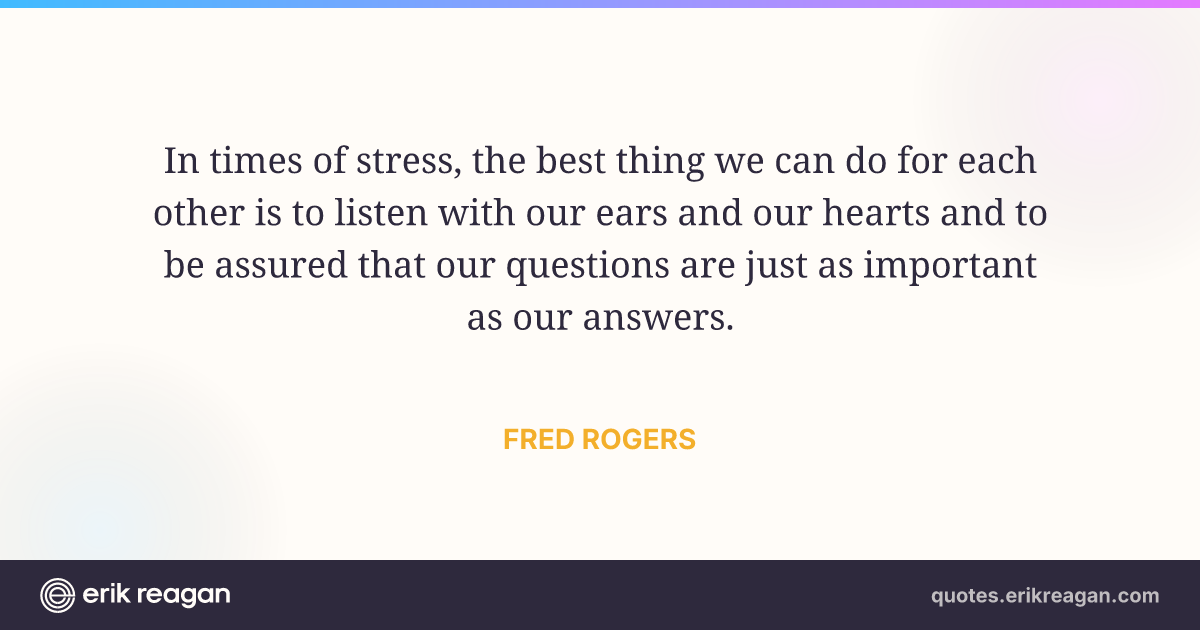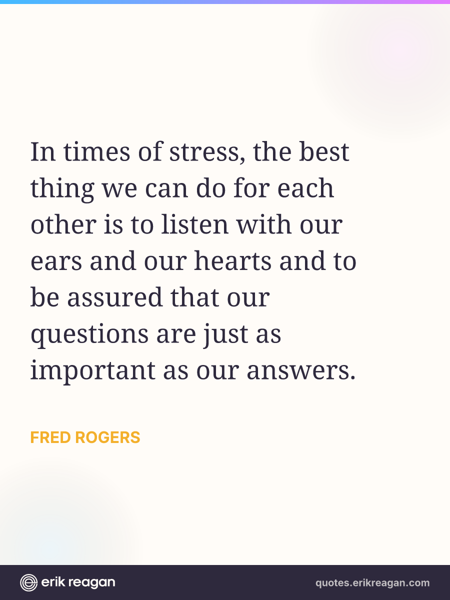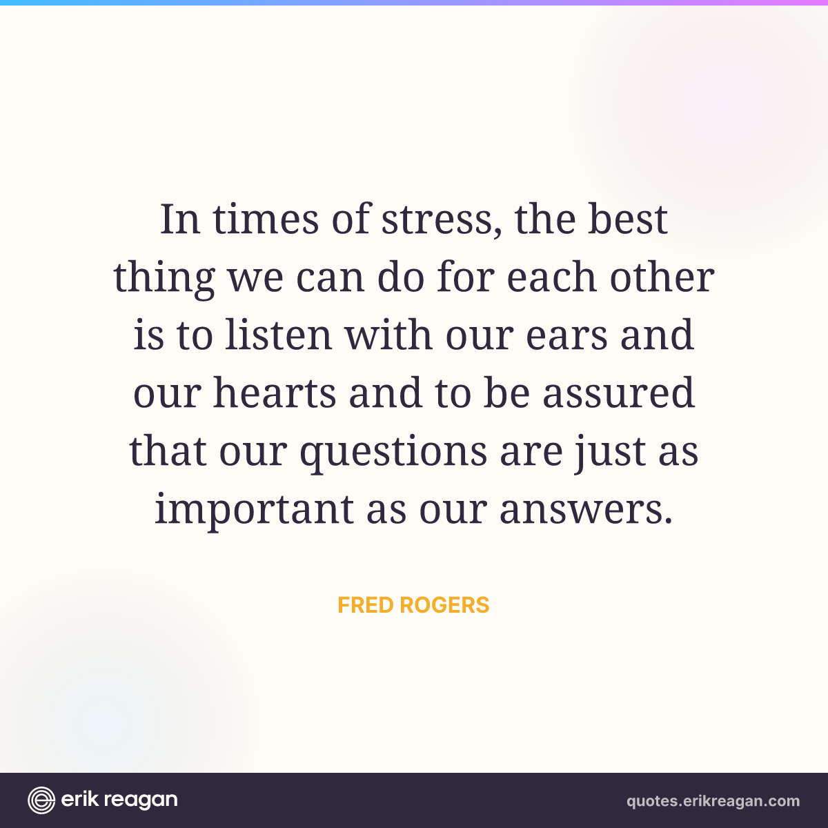 In times of stress, the best thing we can do for each other is to listen with our ears and our hearts and to be assured that our questions are just as important as our answers.