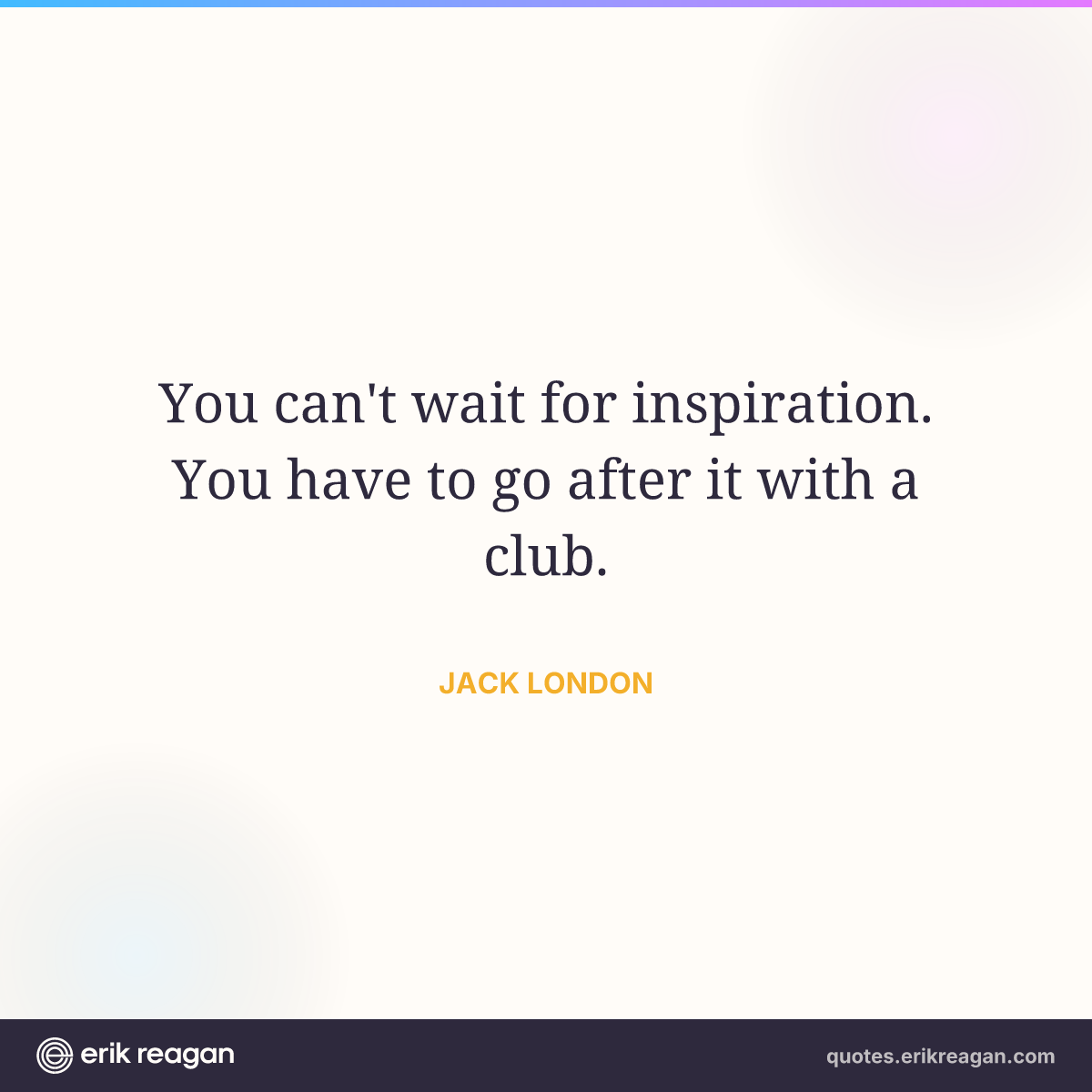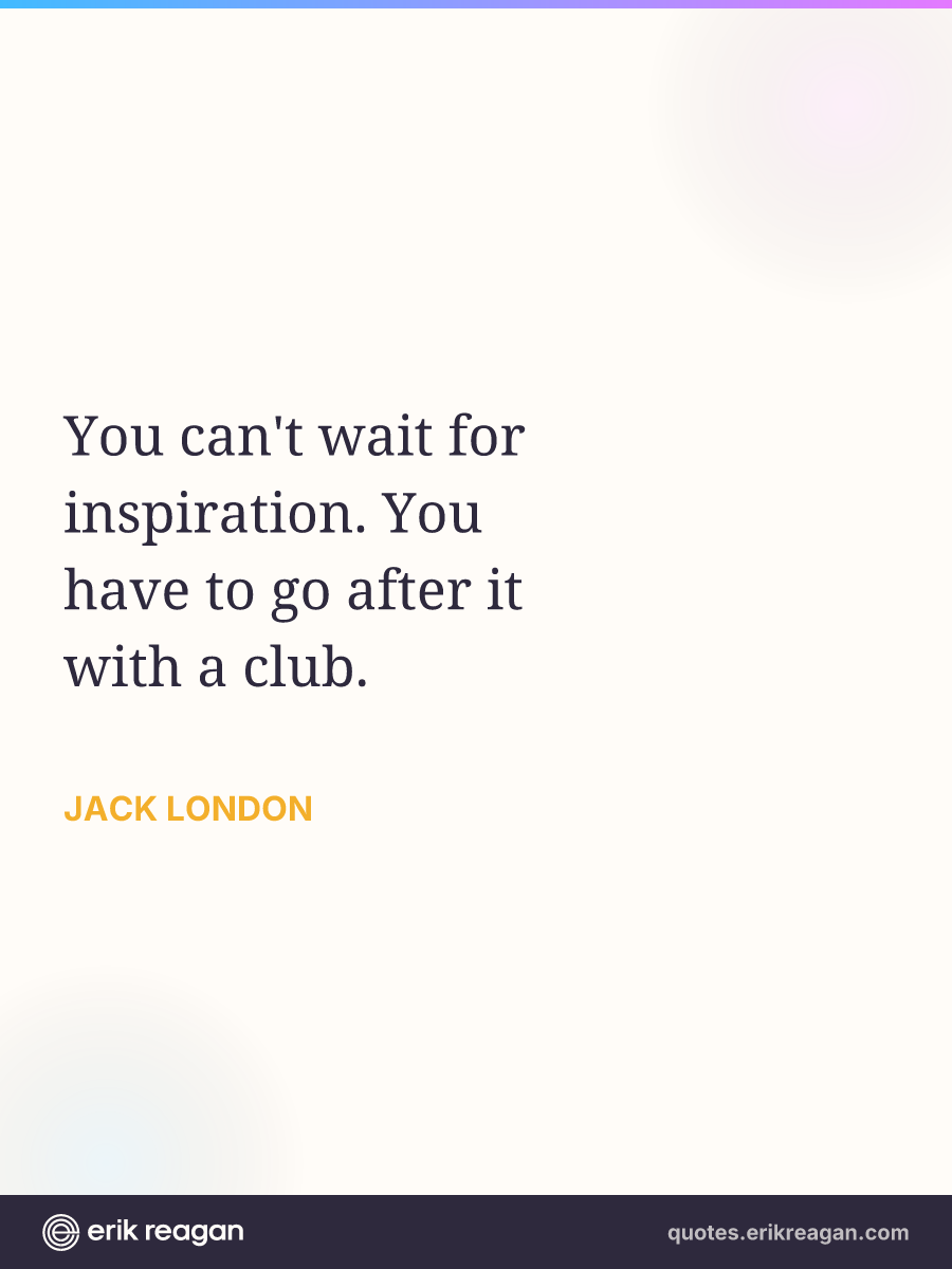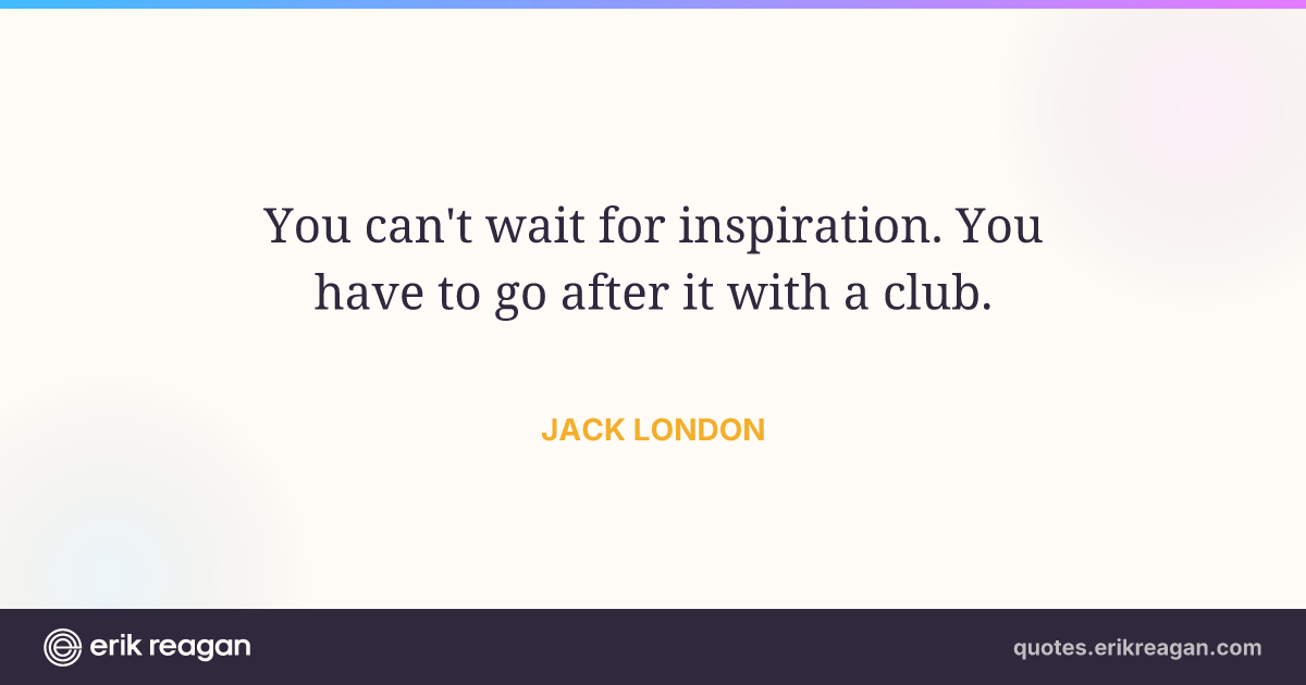 New New Random Quote | Share Post on X Share on Facebook Share on LinkedIn Send via Email | Copy Copy Quote Copy Link | Download Wide 1200×630 Square 1200×1200 Tall 900×1200 You can't wait for inspiration. You have to go after it with a club.