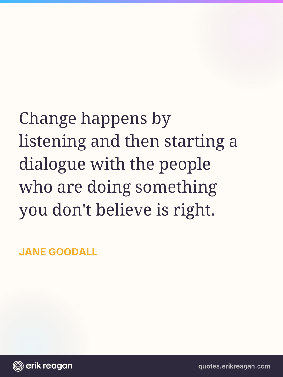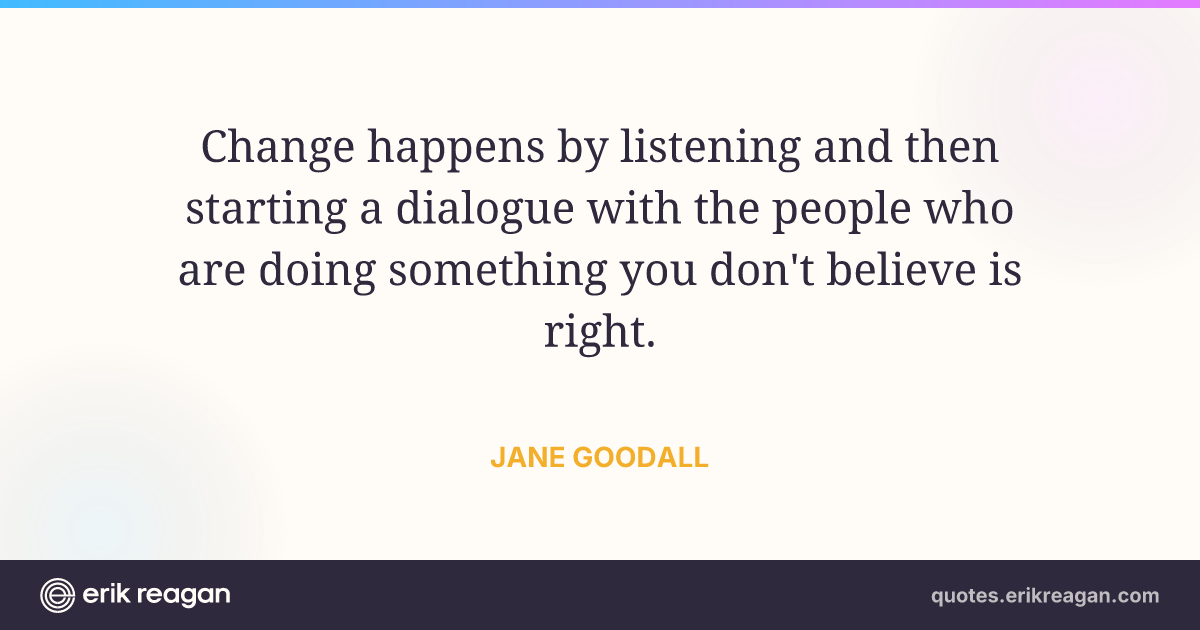 Change happens by listening and then starting a dialogue with the people who are doing something you don't believe is right.