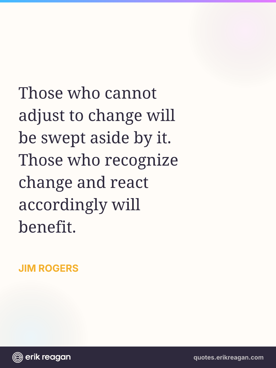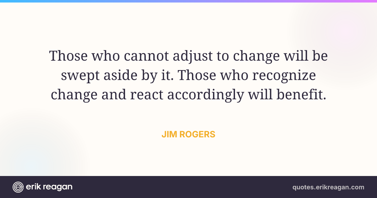 Those who cannot adjust to change will be swept aside by it. Those who recognize change and react accordingly will benefit.