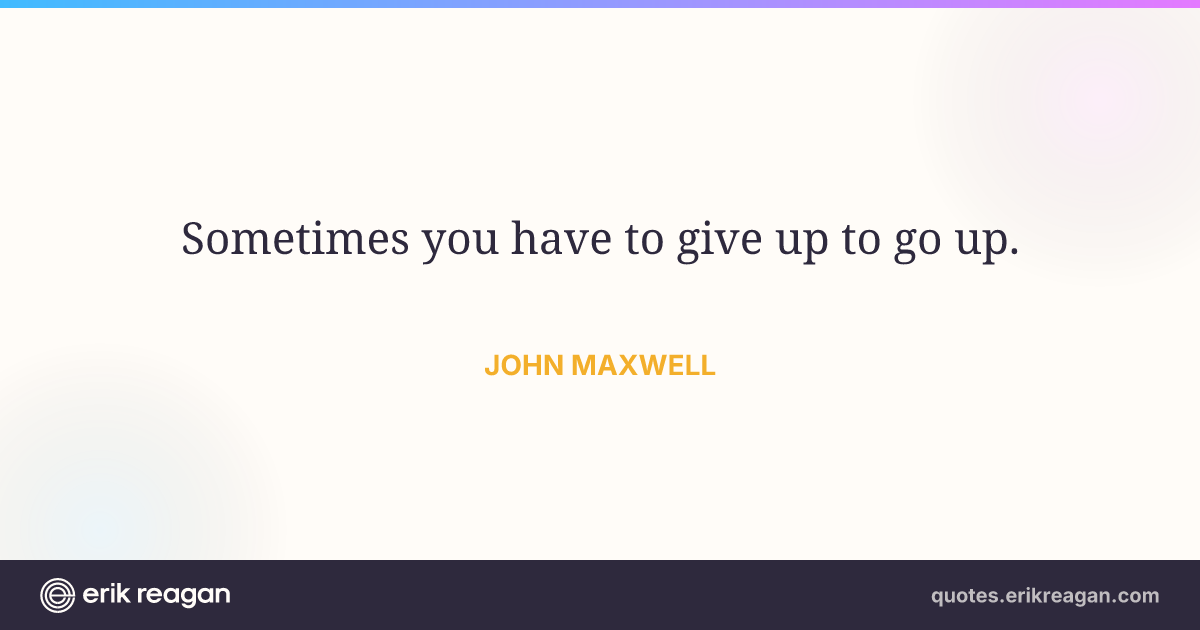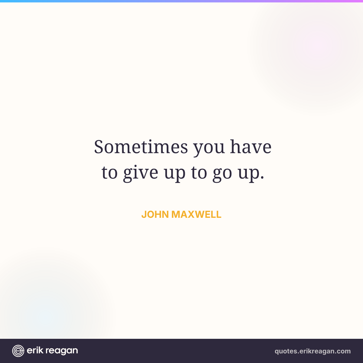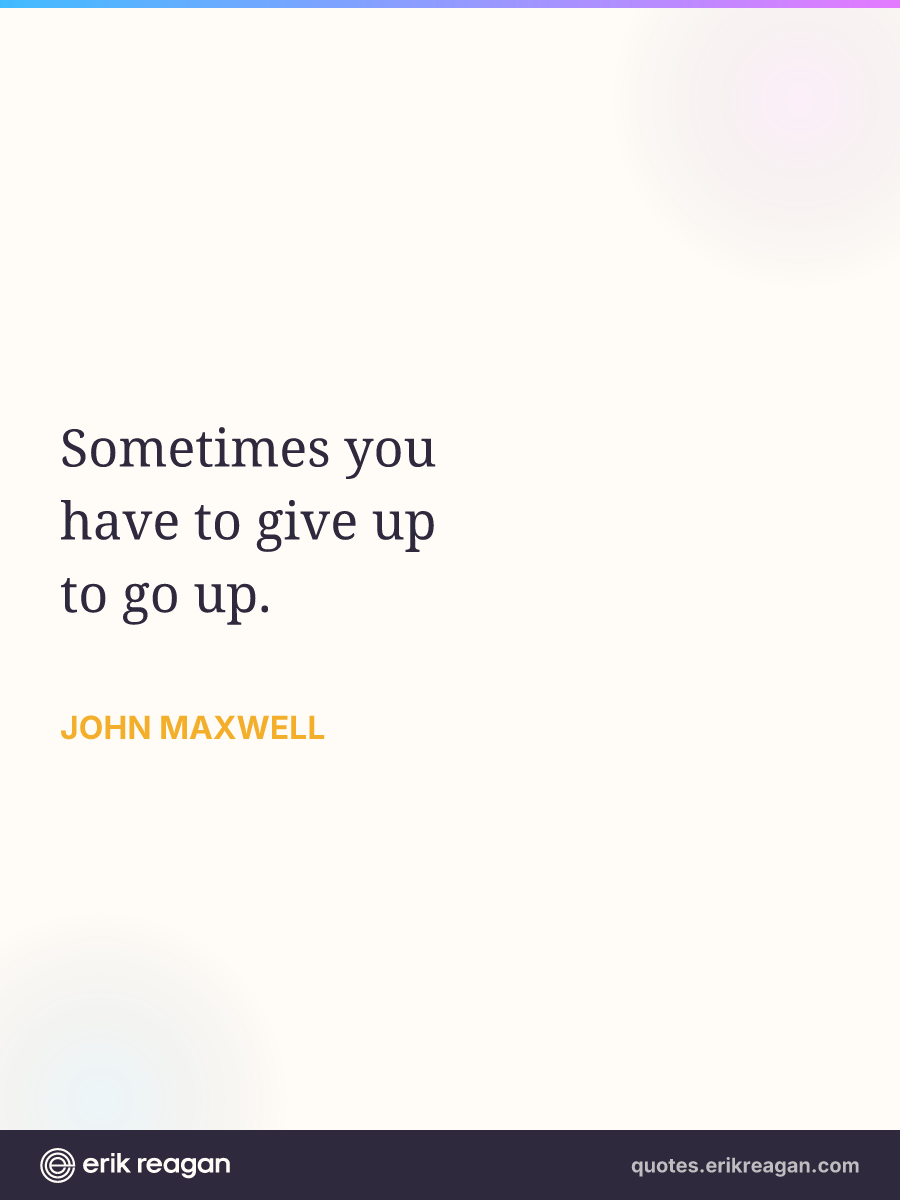 New New Random Quote | Share Post on X Share on Facebook Share on LinkedIn Send via Email | Copy Copy Quote Copy Link | Download Wide 1200×630 Square 1200×1200 Tall 900×1200 Sometimes you have to give up to go up.