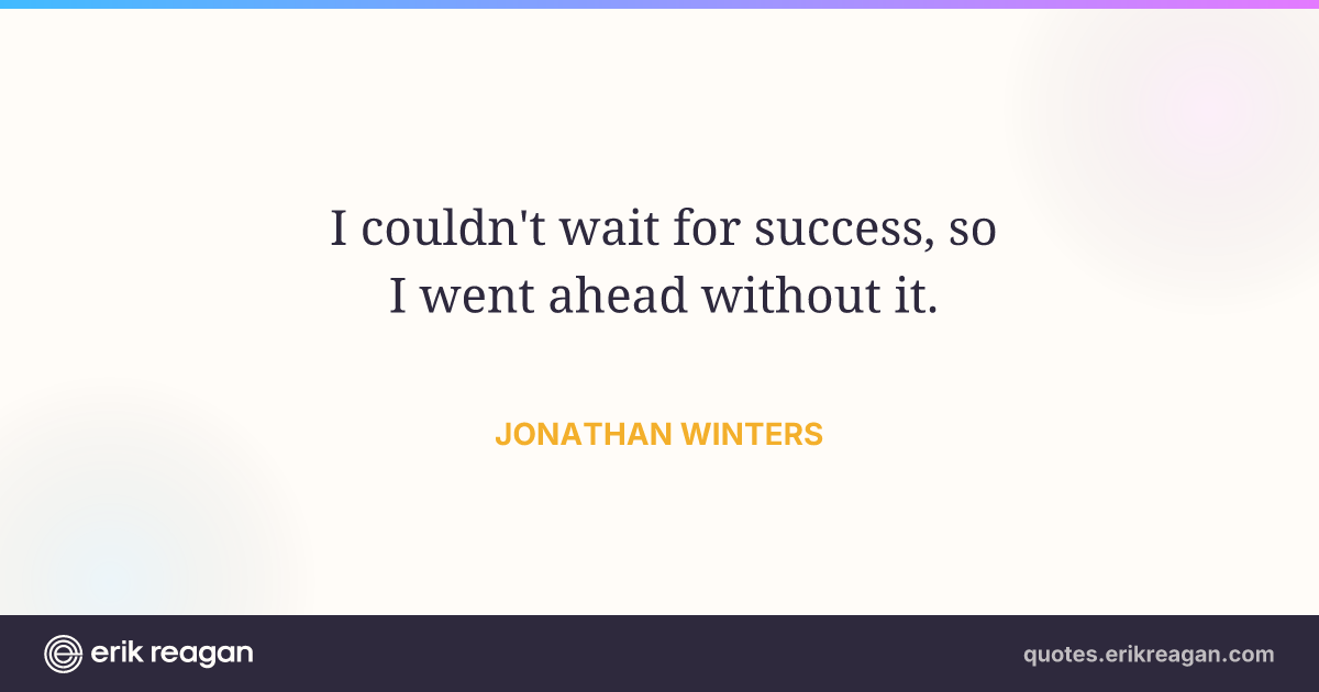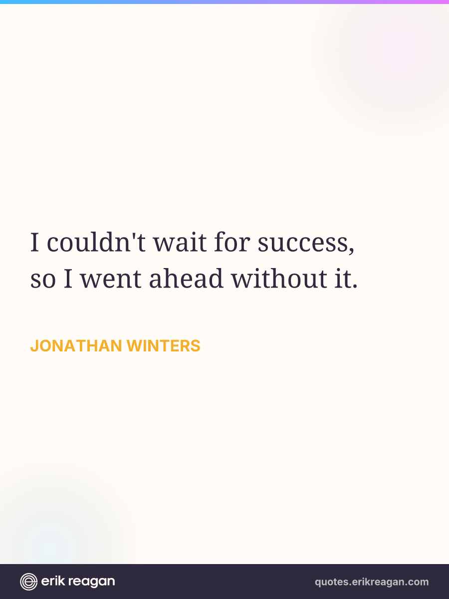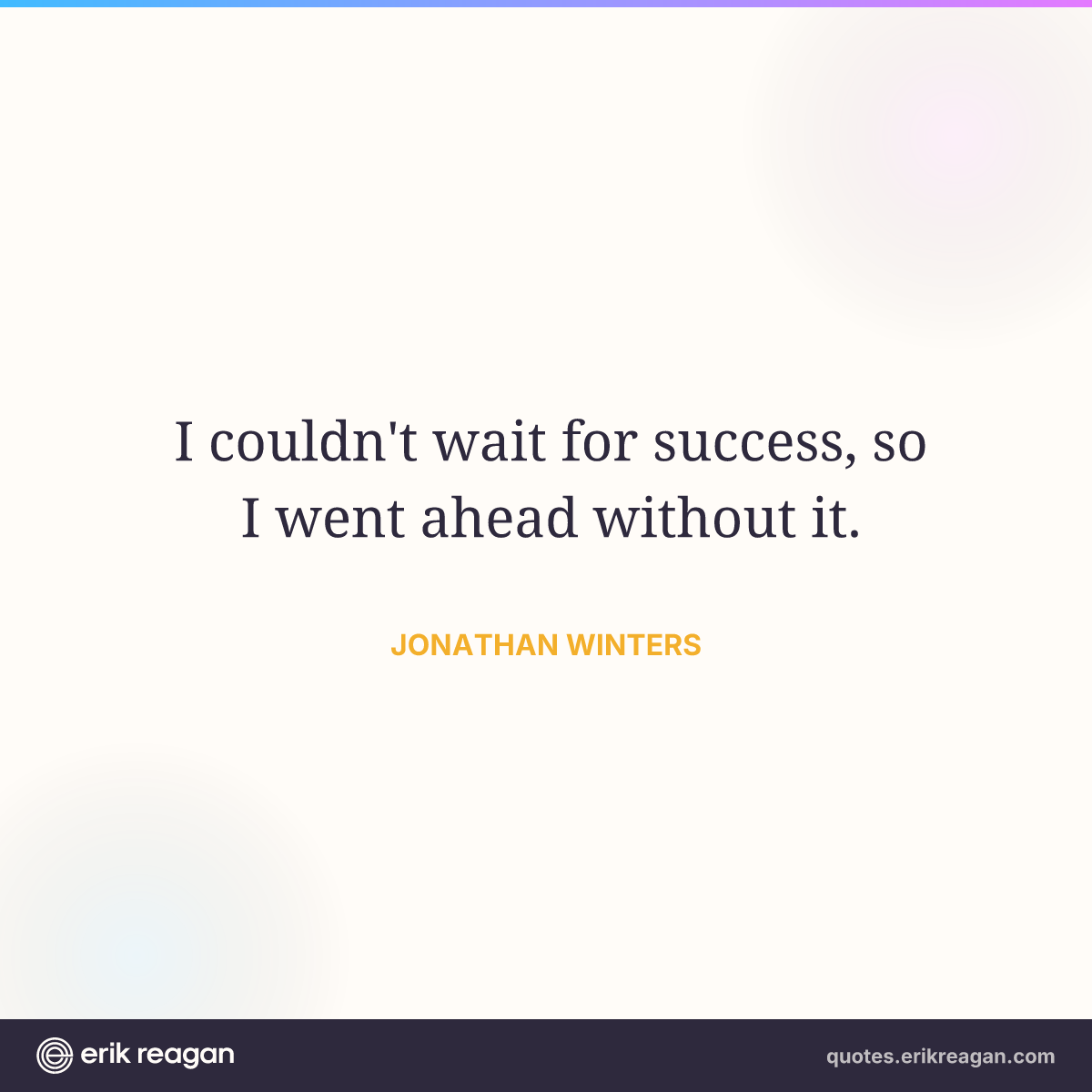 New New Random Quote | Share Post on X Share on Facebook Share on LinkedIn Send via Email | Copy Copy Quote Copy Link | Download Wide 1200×630 Square 1200×1200 Tall 900×1200 I couldn't wait for success, so I went ahead without it.