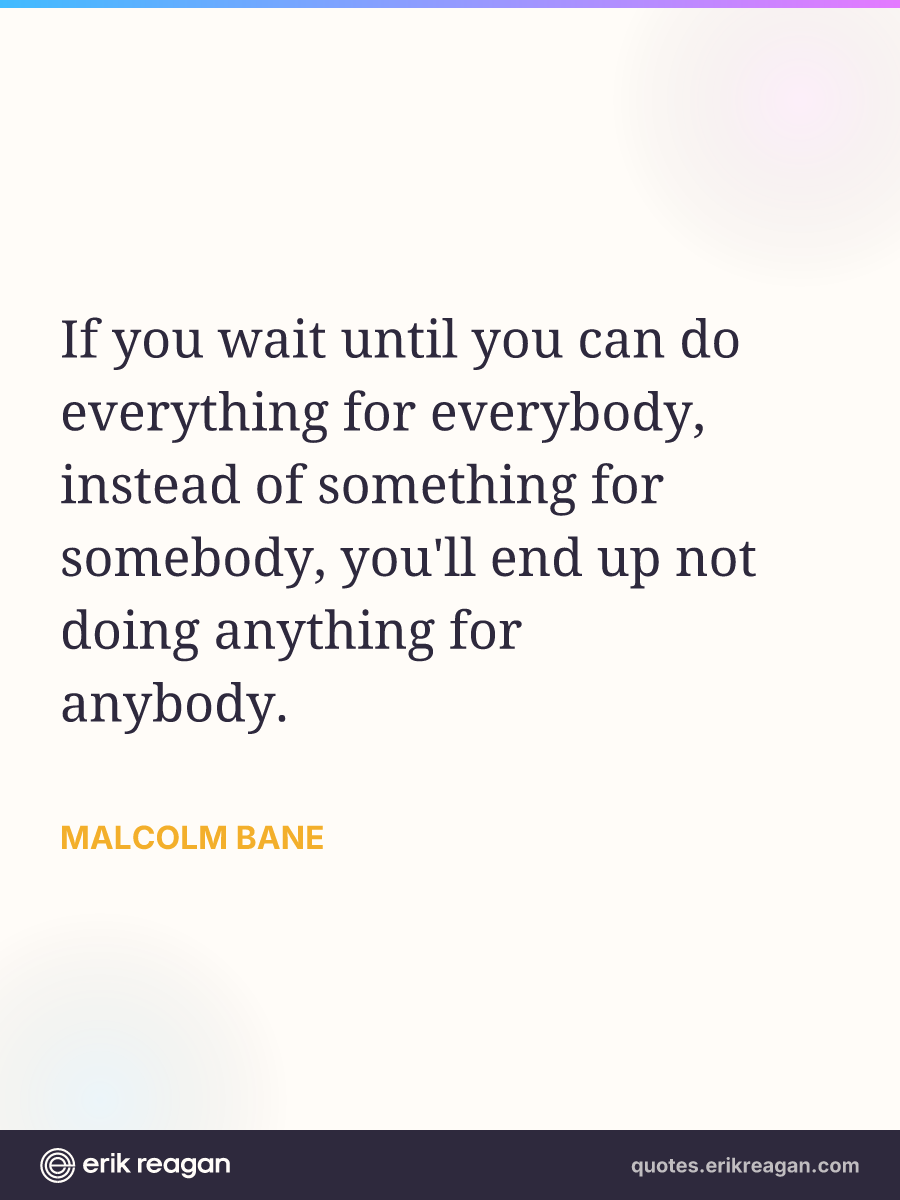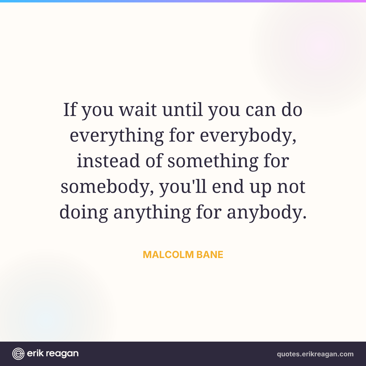 If you wait until you can do everything for everybody, instead of something for somebody, you'll end up not doing anything for anybody.