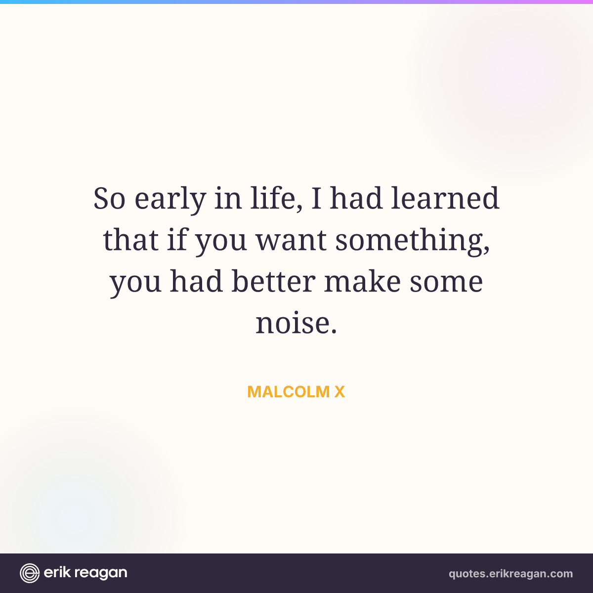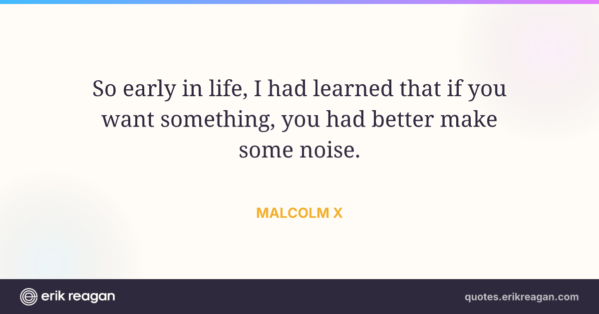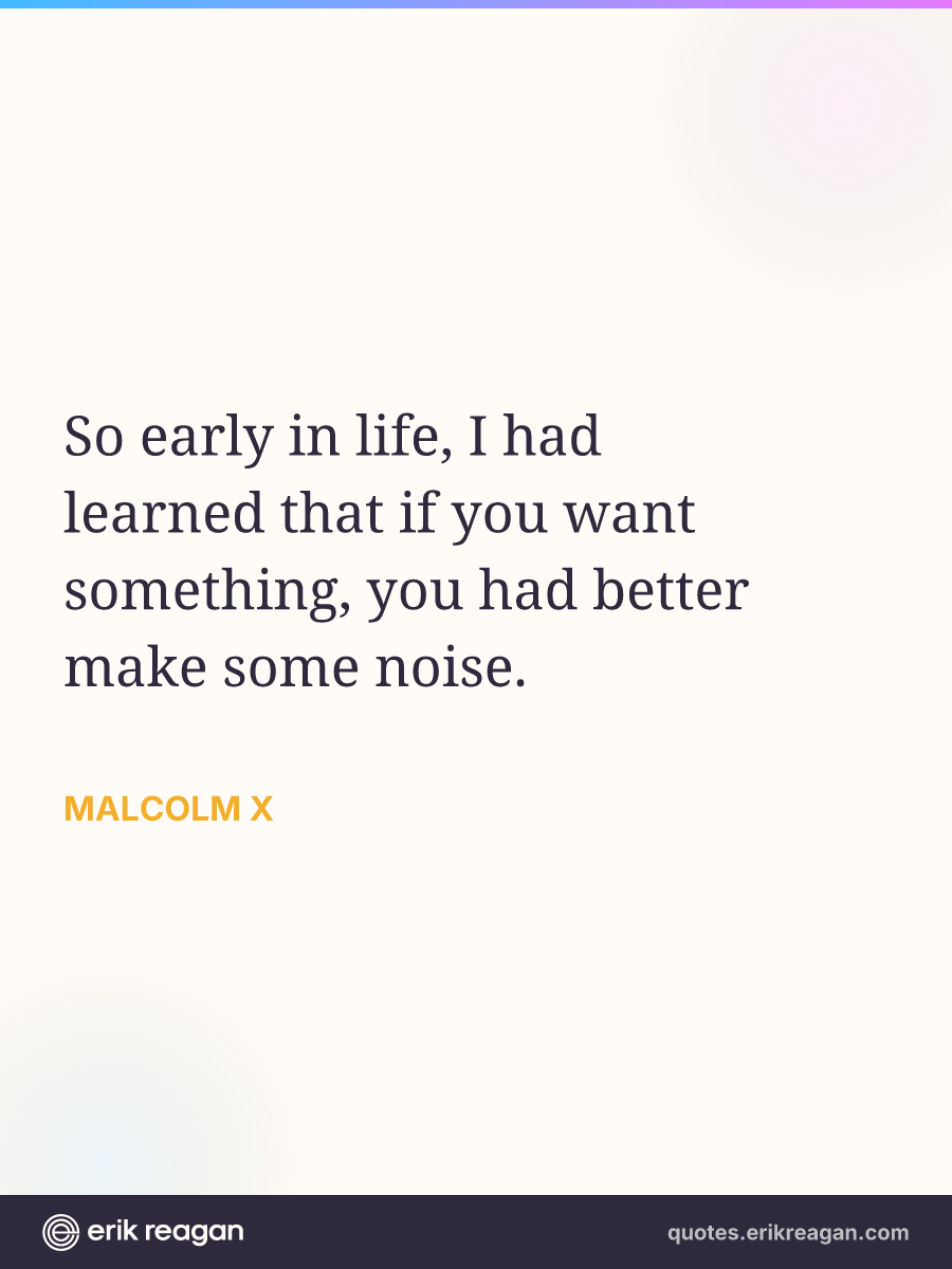 New New Random Quote | Share Post on X Share on Facebook Share on LinkedIn Send via Email | Copy Copy Quote Copy Link | Download Wide 1200×630 Square 1200×1200 Tall 900×1200 So early in life, I had learned that if you want something, you had better make some noise.