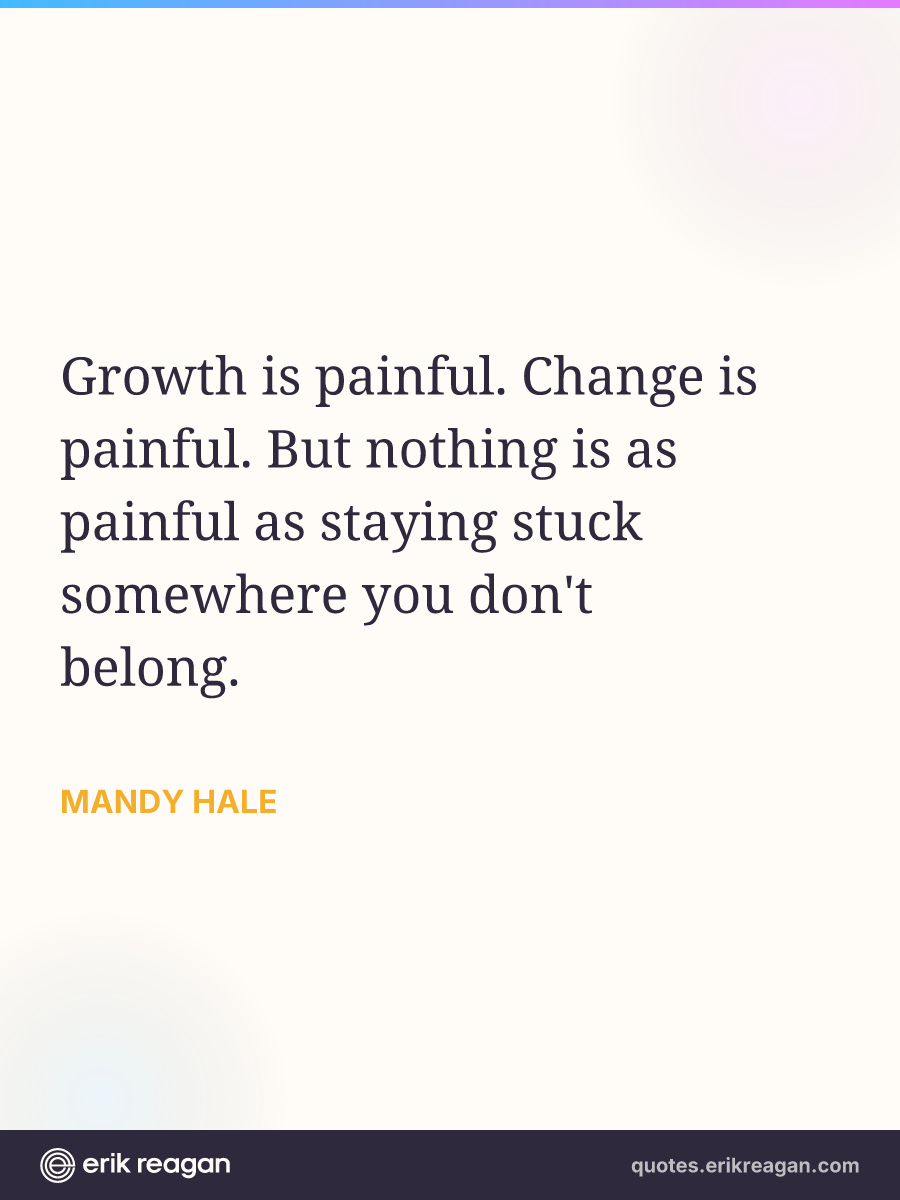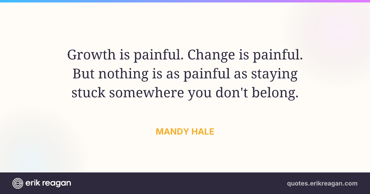 Growth is painful. Change is painful. But nothing is as painful as staying stuck somewhere you don't belong.