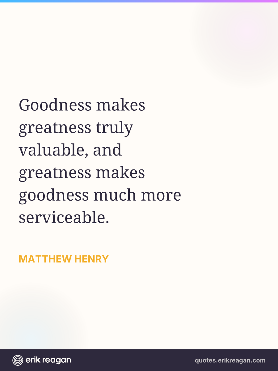 New New Random Quote | Share Post on X Share on Facebook Share on LinkedIn Send via Email | Copy Copy Quote Copy Link | Download Wide 1200×630 Square 1200×1200 Tall 900×1200 Goodness makes greatness truly valuable, and greatness makes goodness much more serviceable.