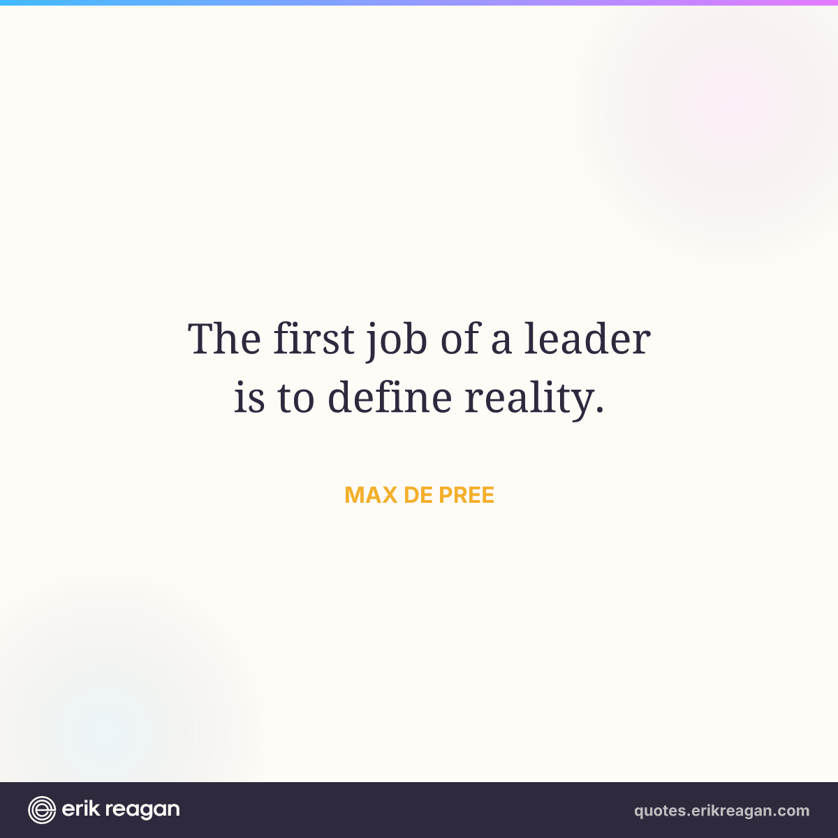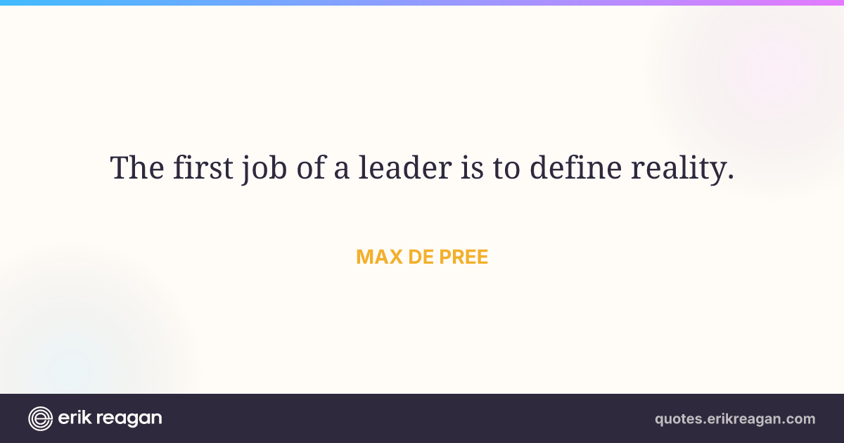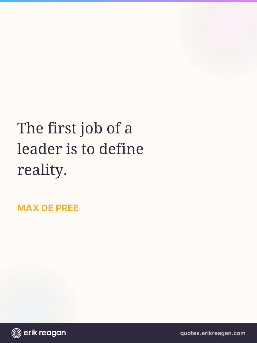 New New Random Quote | Share Post on X Share on Facebook Share on LinkedIn Send via Email | Copy Copy Quote Copy Link | Download Wide 1200×630 Square 1200×1200 Tall 900×1200 The first job of a leader is to define reality.
