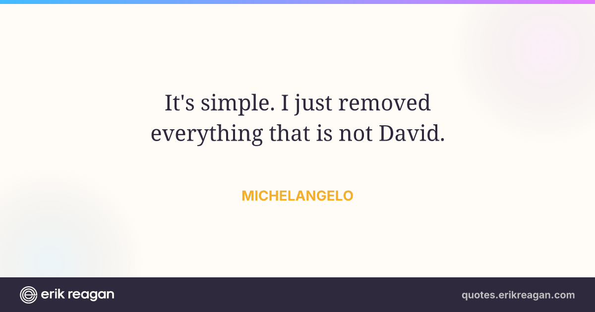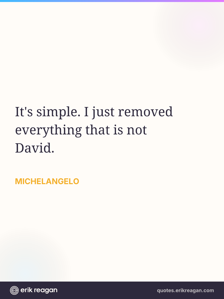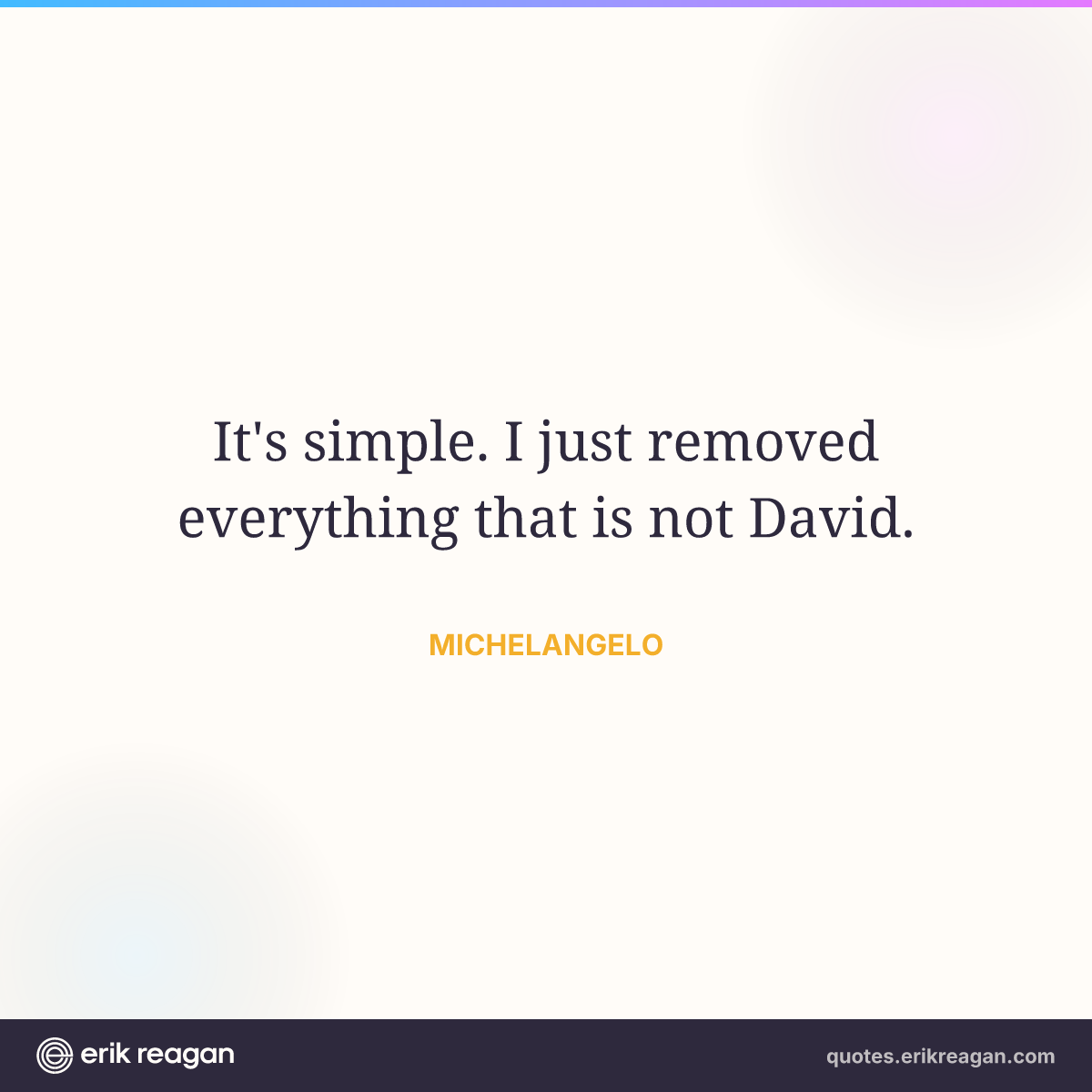 New New Random Quote | Share Post on X Share on Facebook Share on LinkedIn Send via Email | Copy Copy Quote Copy Link | Download Wide 1200×630 Square 1200×1200 Tall 900×1200 It's simple. I just removed everything that is not David.