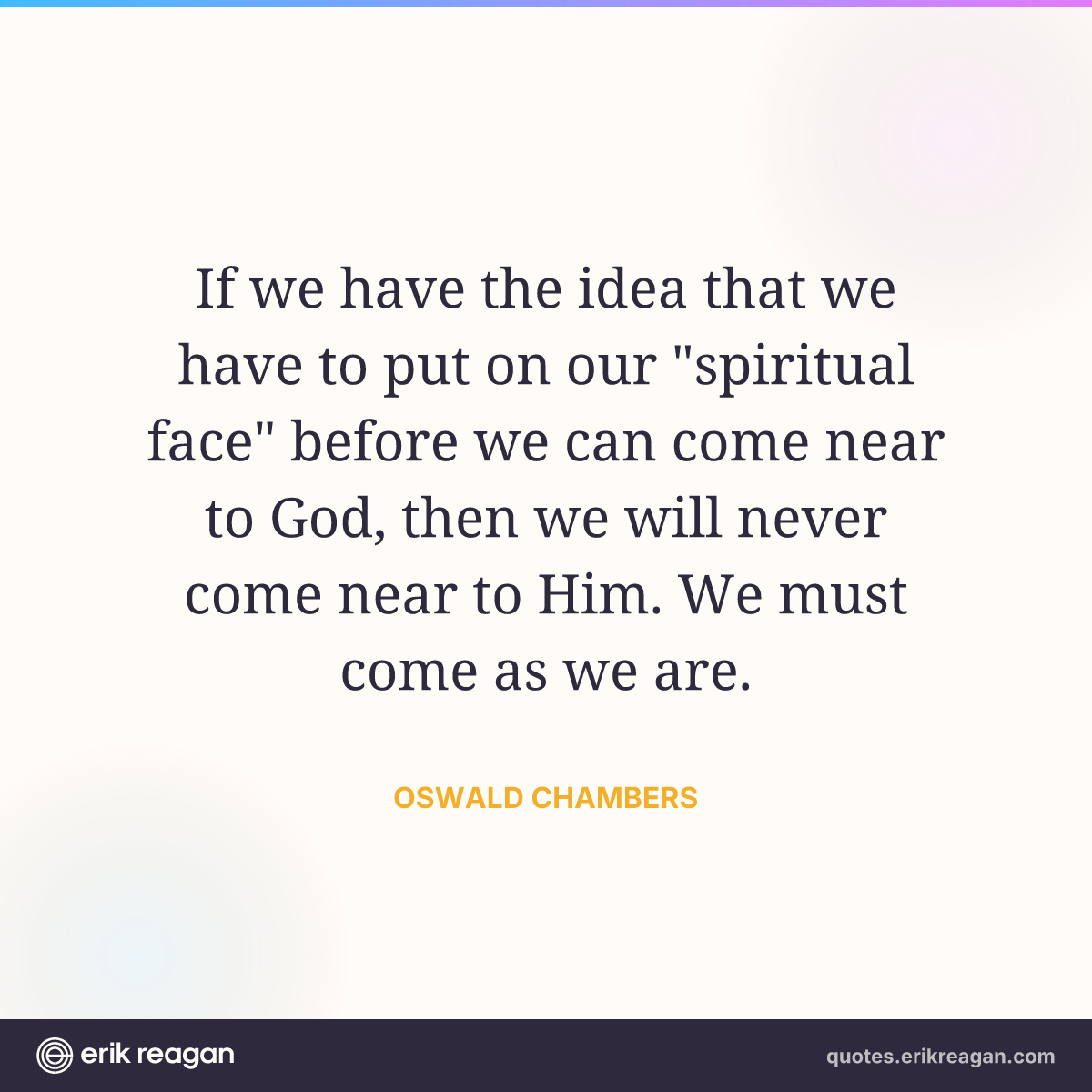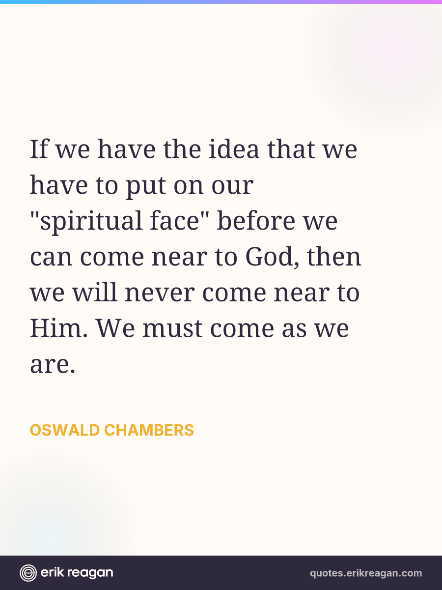 If we have the idea that we have to put on our "spiritual face" before we can come near to God, then we will never come near to Him. We must come as we are.