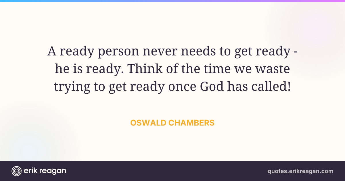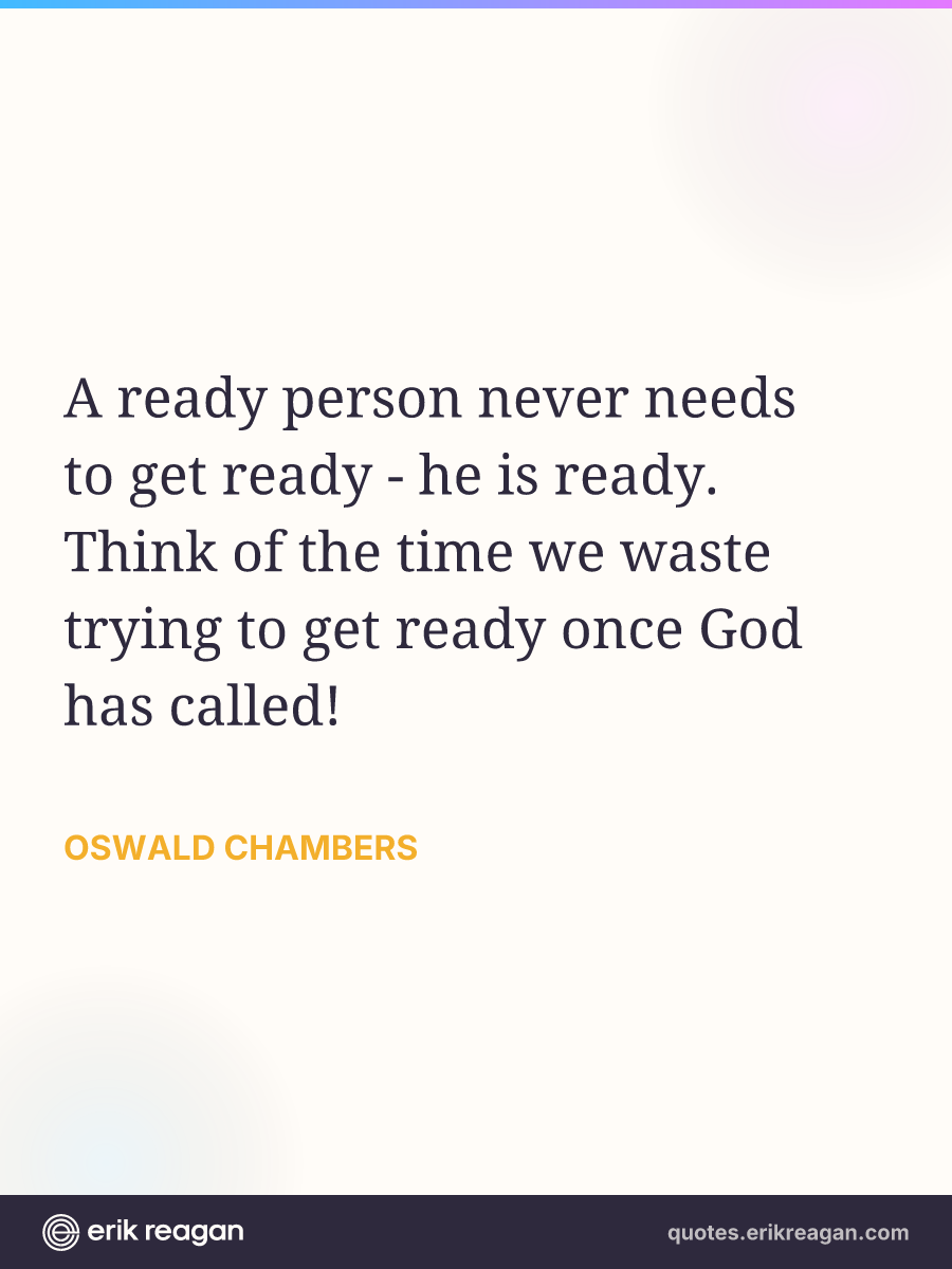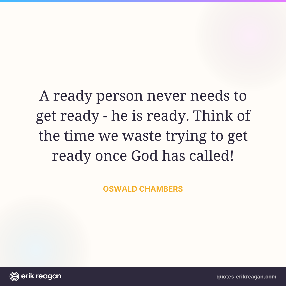 A ready person never needs to get ready - he is ready. Think of the time we waste trying to get ready once God has called!