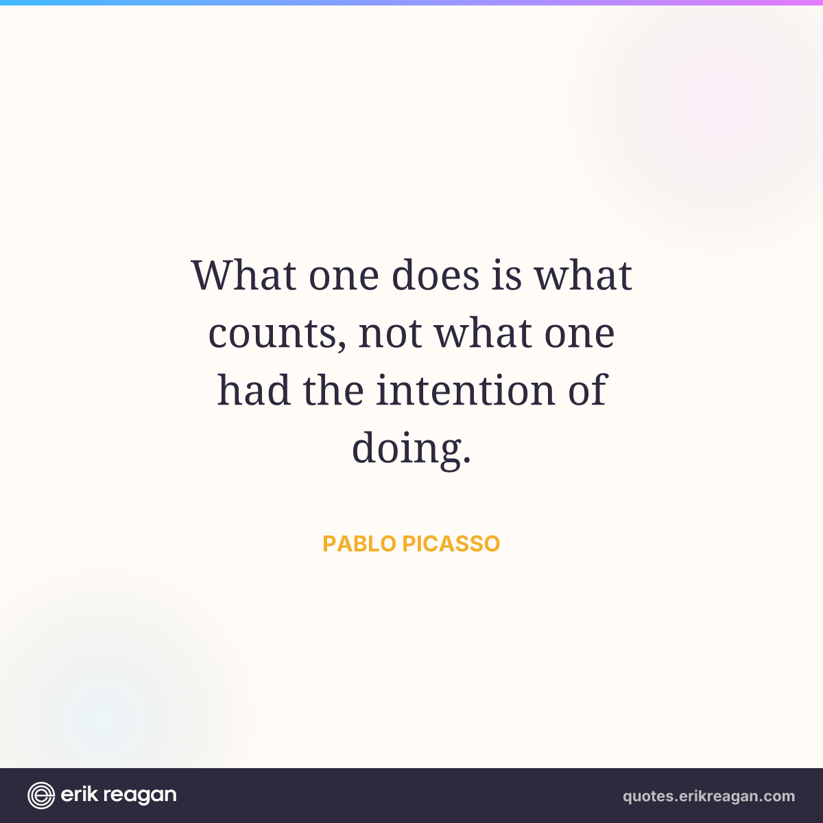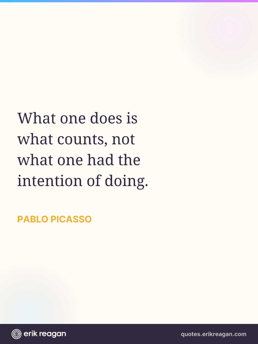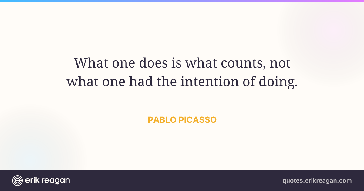New New Random Quote | Share Post on X Share on Facebook Share on LinkedIn Send via Email | Copy Copy Quote Copy Link | Download Wide 1200×630 Square 1200×1200 Tall 900×1200 What one does is what counts, not what one had the intention of doing.