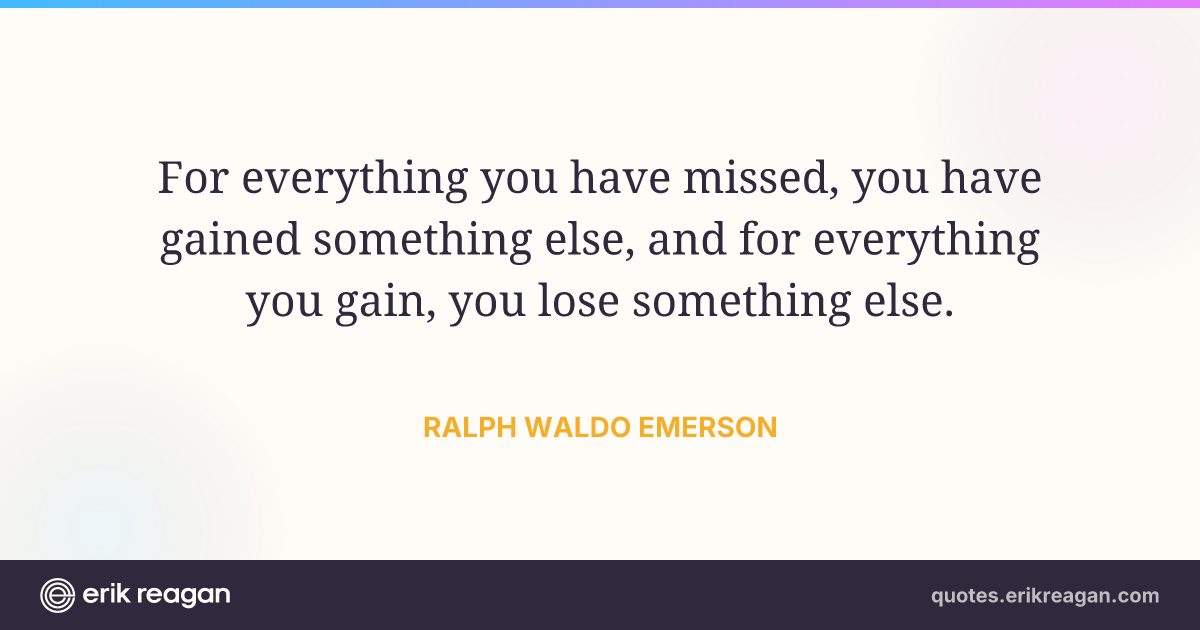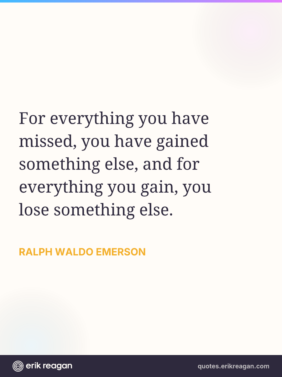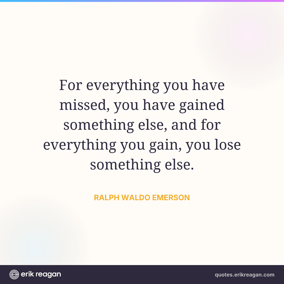 For everything you have missed, you have gained something else, and for everything you gain, you lose something else.