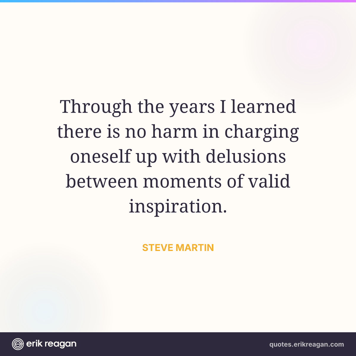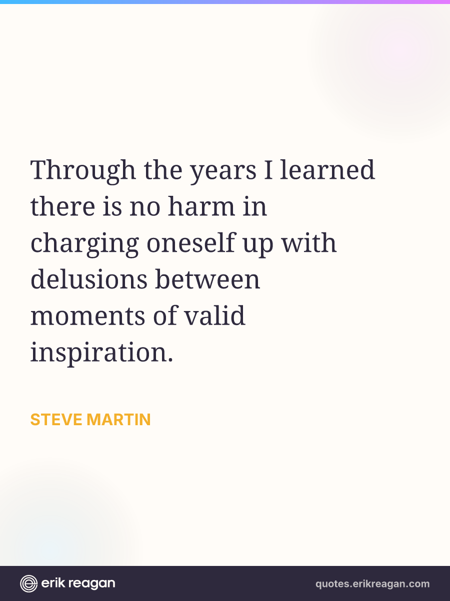 Through the years I learned there is no harm in charging oneself up with delusions between moments of valid inspiration.
