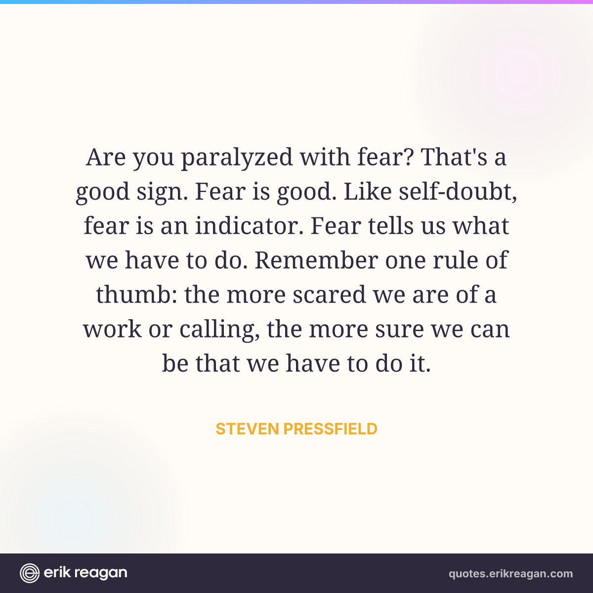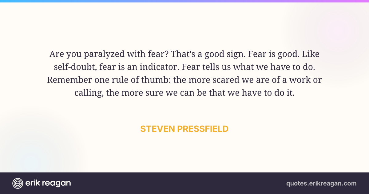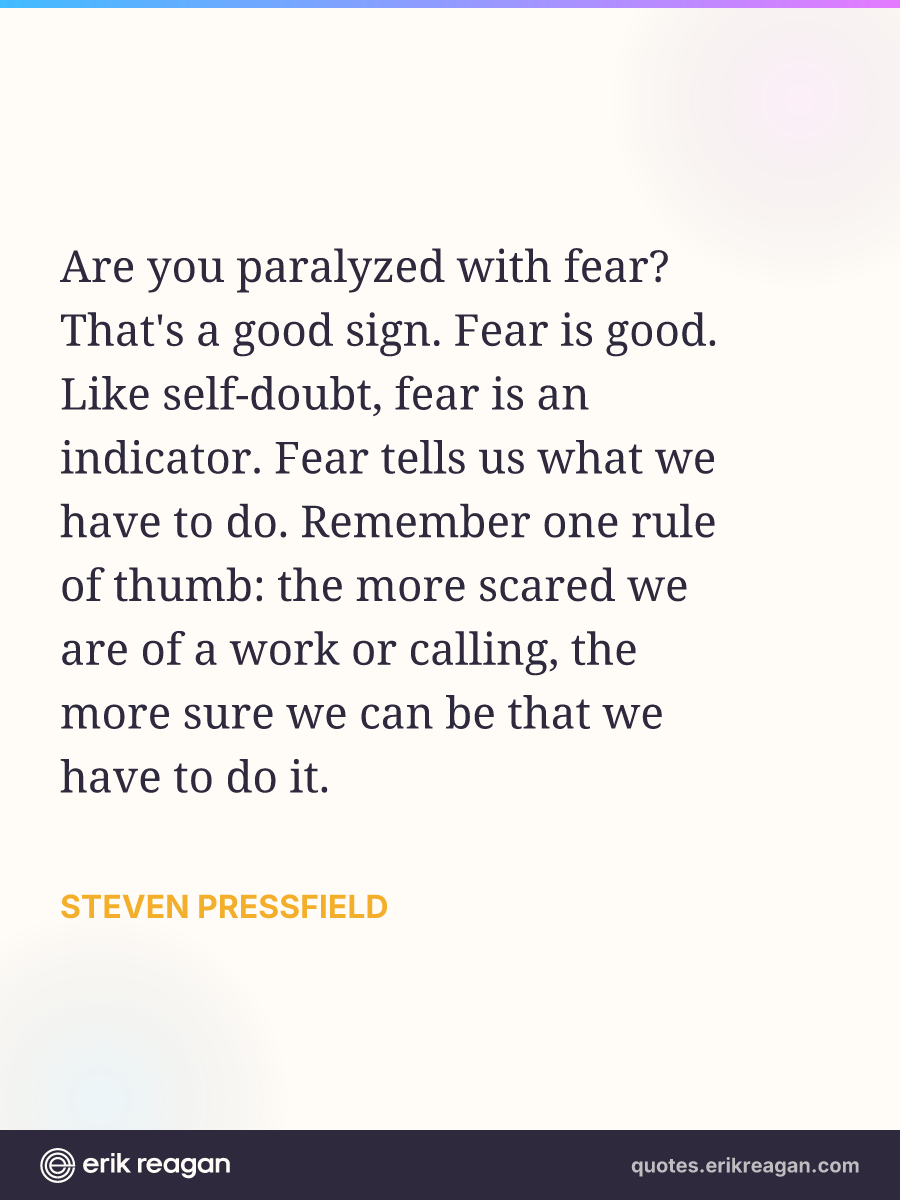 Are you paralyzed with fear? That's a good sign. Fear is good. Like self-doubt, fear is an indicator. Fear tells us what we have to do. Remember one rule of thumb: the more scared we are of a work or calling, the more sure we can be that we have to do it.