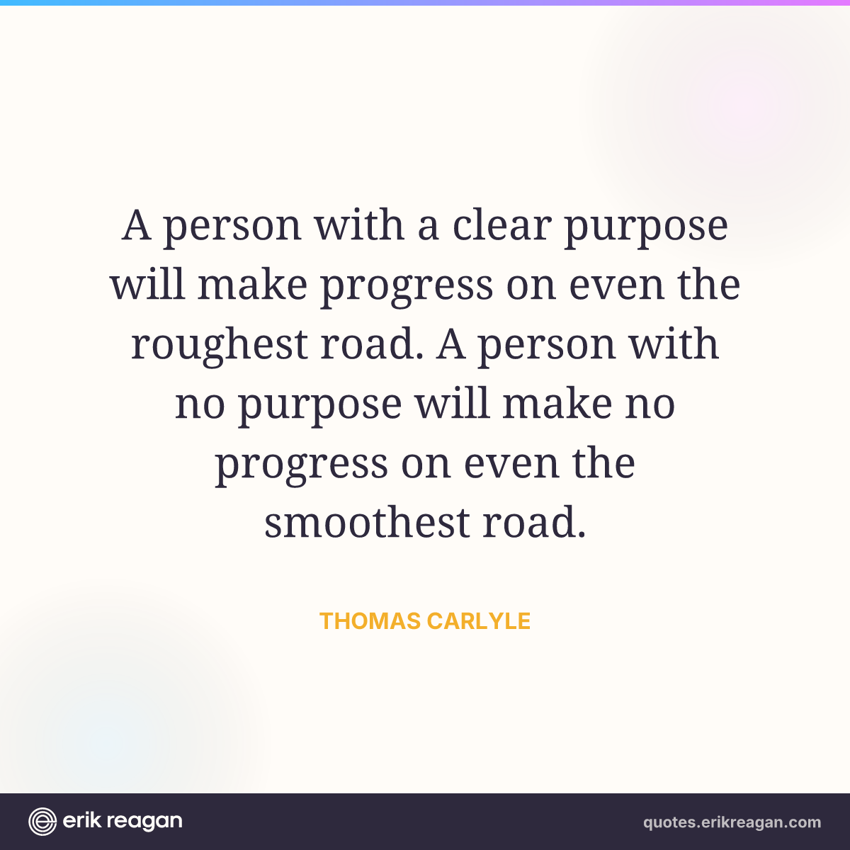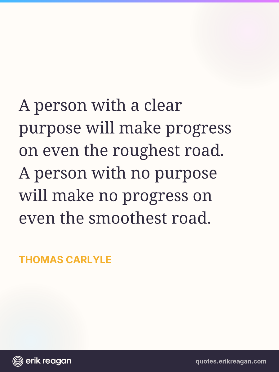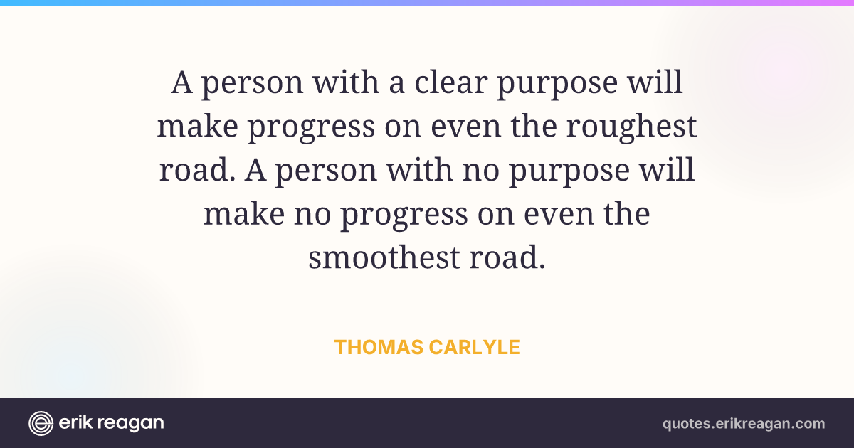 A person with a clear purpose will make progress on even the roughest road. A person with no purpose will make no progress on even the smoothest road.